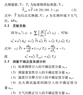通過評定可得,開口 / 閉口閃點測定儀的不確定度主要來源于標準物質、重復性測量及點火測溫間隔引入的不確定度,溫度計顯示和大氣壓修正引入的標準不確定度較小。