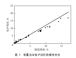 2 由原來的 0. 91 ~ 0. 97 到均優于0. 99 ,說明三種殘炭測定方法的數據基本一致。